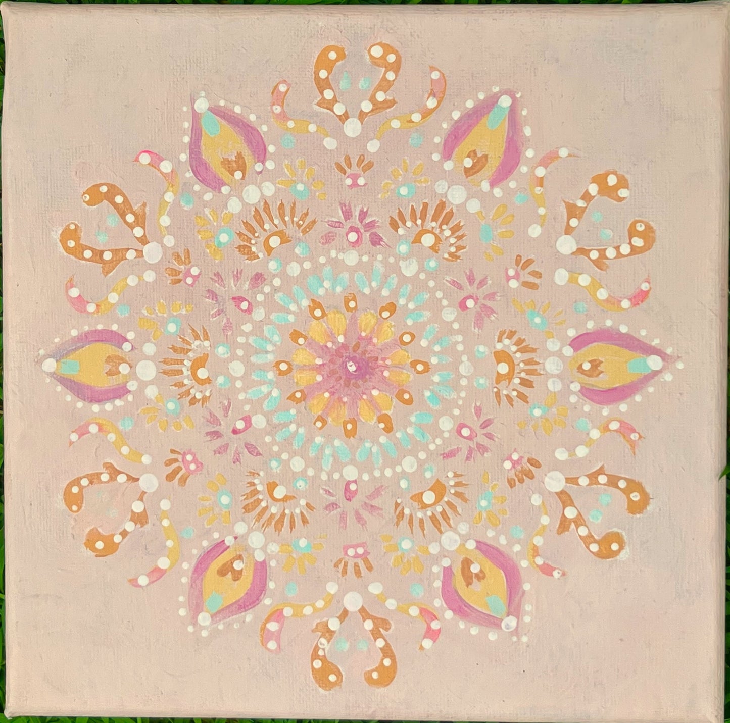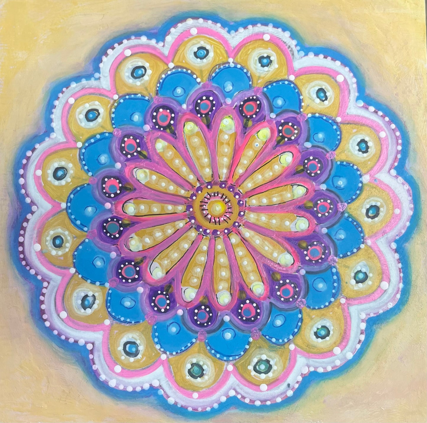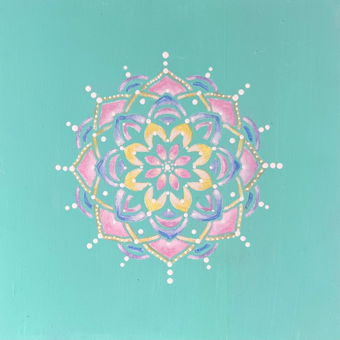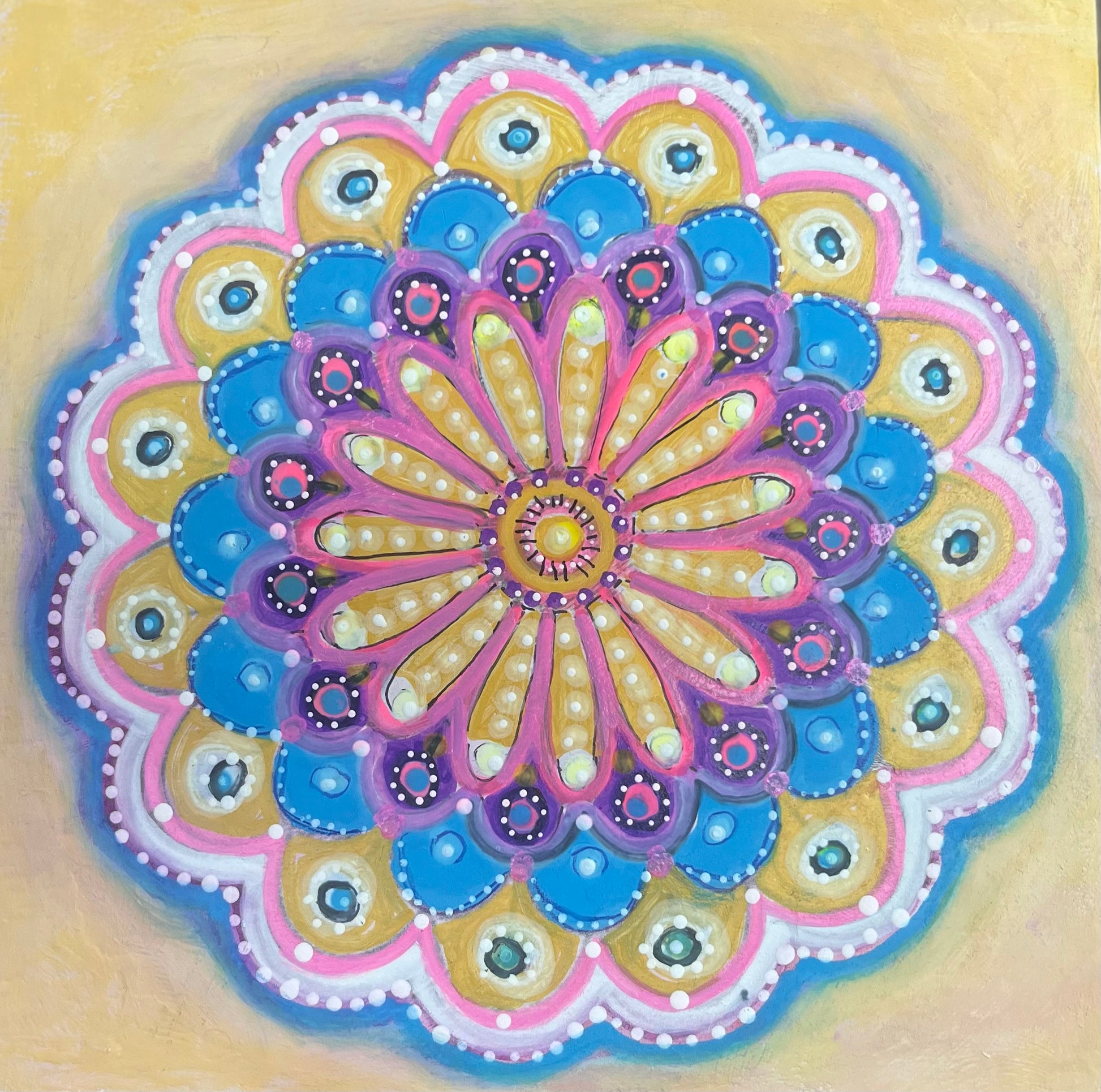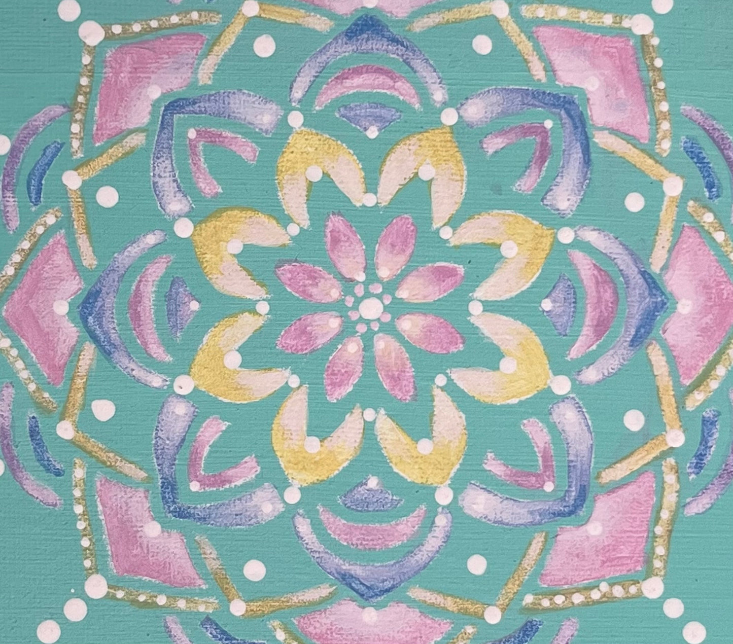 - learn how to layer paint and pattern to create a unique small canvas mandala artwork
